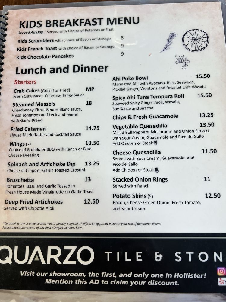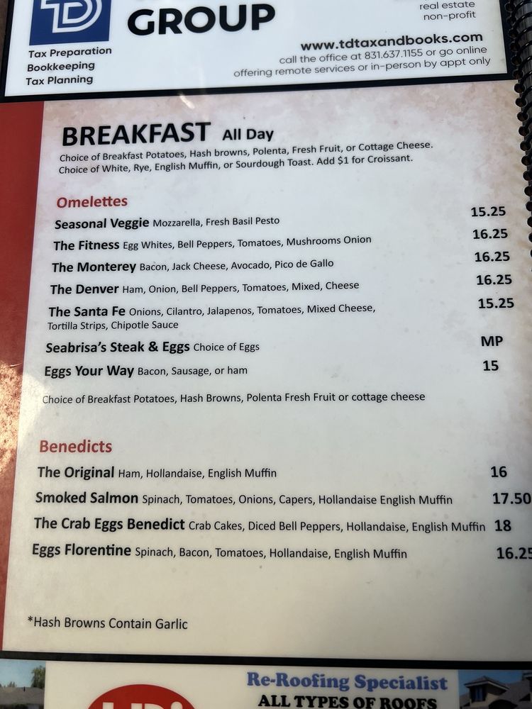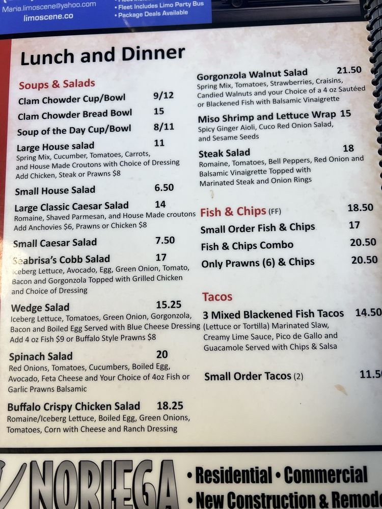 Introducing Seabrisa’s Eatery, a seafood restaurant located in Hollister, CA. Offering a wide range of seafood dishes, Seabrisa’s is a casual dining spot with options for vegetarians as well. With amenities such as outdoor seating, wheelchair accessibility, and dog-friendly space, it caters to a diverse range of customers. The menu features brunch and dinner options, with a variety of happy hour specials available. Whether you’re looking for a family-friendly meal or a place to catch up with friends, Seabrisa’s Eatery provides a welcoming and relaxed atmosphere. Don’t miss out on trying their delicious seafood dishes paired with beer and wine options. Make a reservation or simply stop by for a memorable dining experience at Seabrisa’s Eatery.